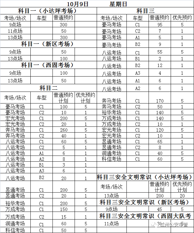 兰州市2022年10月8日-2022年10月14日考试计划公告