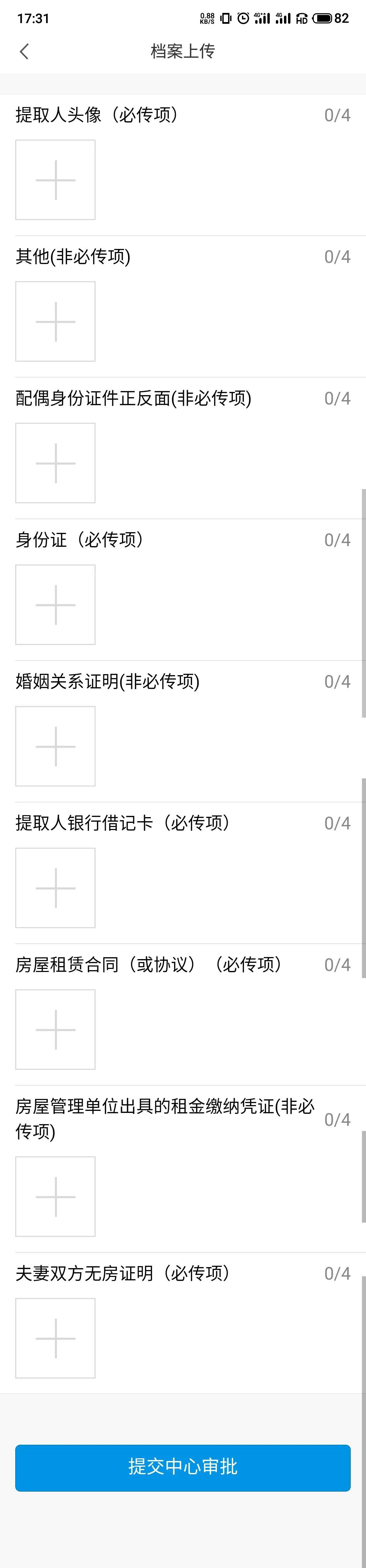 5、上传所有待传资料后,点击“提交中心审批”,完成办理。