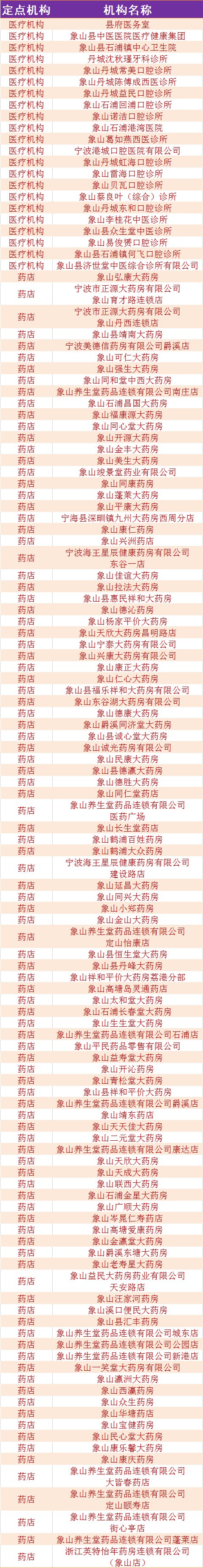 象山县124家定点医疗医院、药店一览:
