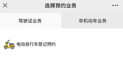 2、选择“车驾管业务预约”、“非机动车业务”、“电动自行车登记预约”;