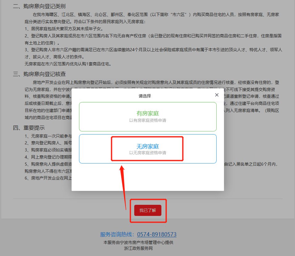 所有购房意向都要通过线上申请,无房家庭优先购房、有房家庭购房意向都能要通过宁波市房产交易信息服务网或者宁波房产(公众版)APP(目前只支持安卓系统)进行线上登记。