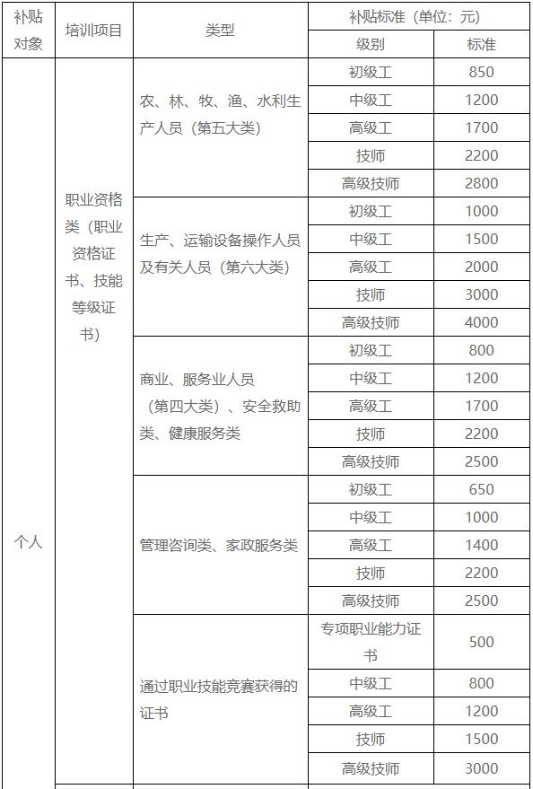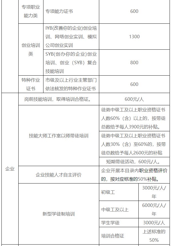 宁波市职业技能培训补贴目录及补贴标准