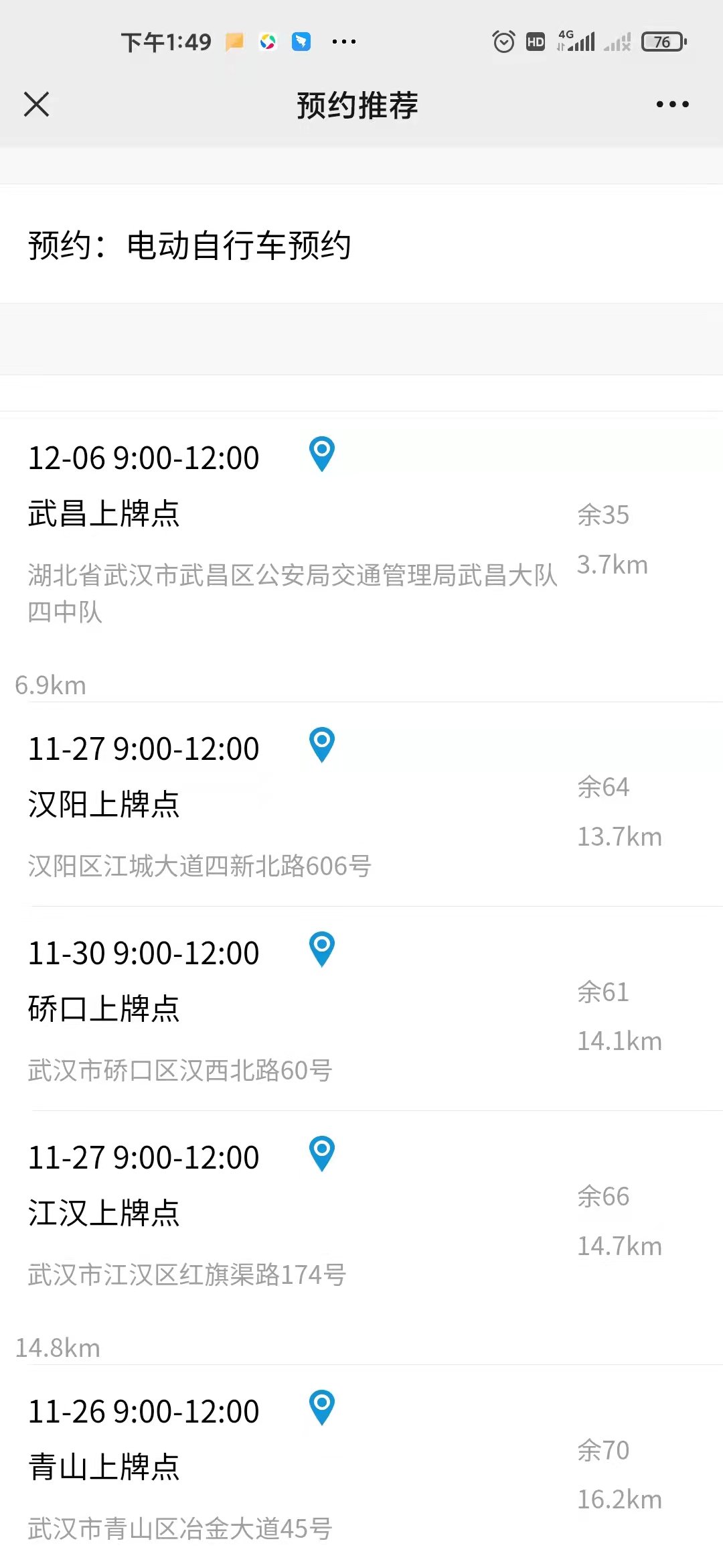 ➤武汉电动自行车登记上牌预约提示: