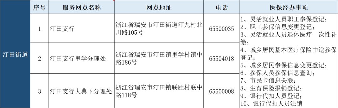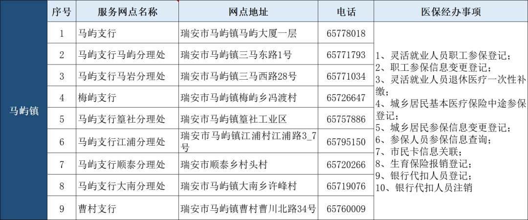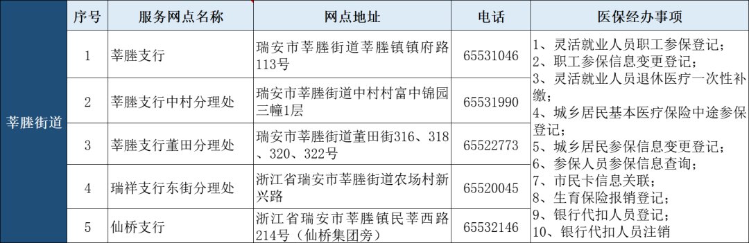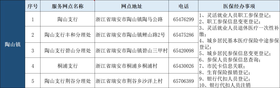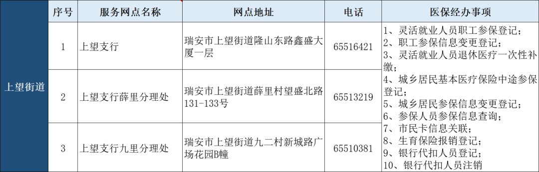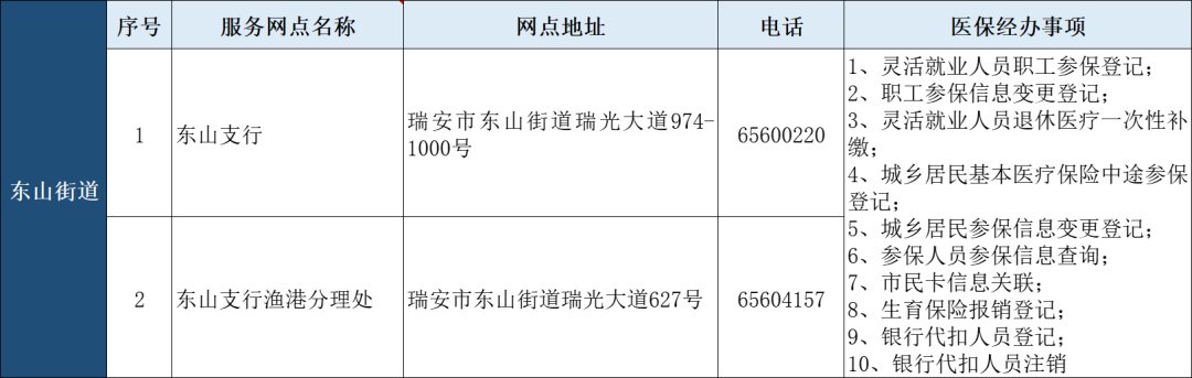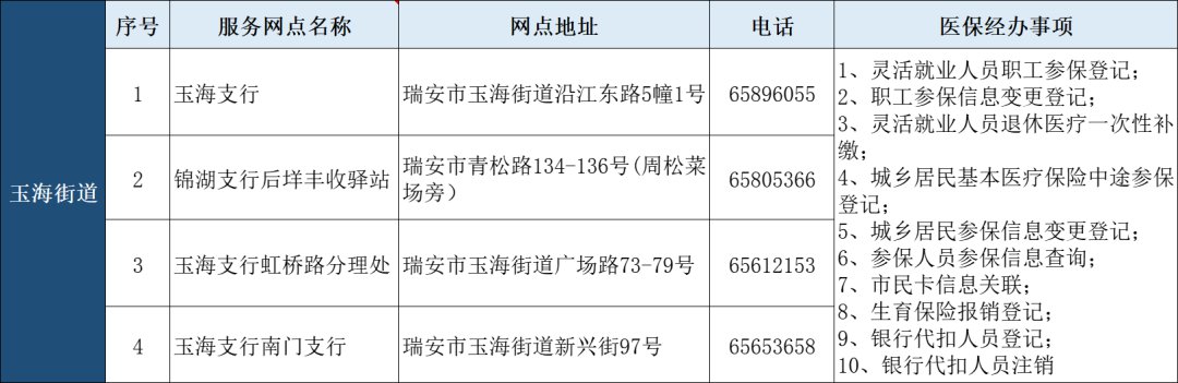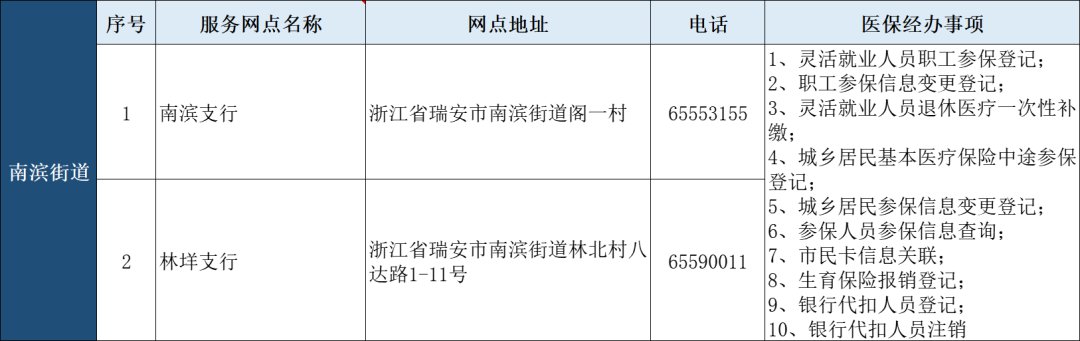 为方便市民就近办理相关医保经办业务,温州本地宝整理了瑞安全市医保业务经办点、市“医保业务经办”银行代办点、市“红色代办”示范点全名单,赶紧来查收吧↓