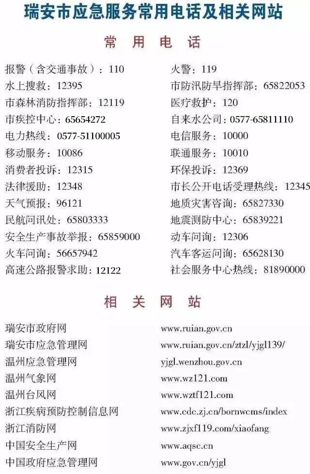 - 温州瑞安市应急电话请牢记 -