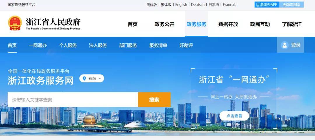 用人单位打开“浙江政务服务网”界面(建议用谷歌浏览器),选择“浙江省”→“温州市”→“瑞安市”;