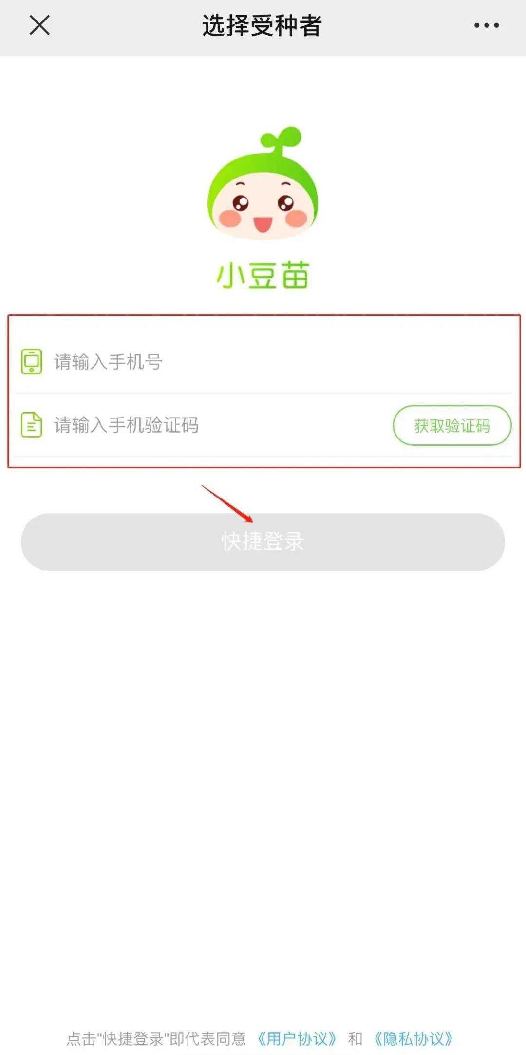 (如门诊是小豆苗取号系统,可支持在取号主机输入手机号码或扫预约码取号后等待接种。如不是请出示预约记录给门诊预检医生查验。)