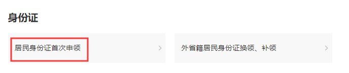 打开浙江政务服务网的户籍及身份证页面:点击进入,选择“居民身份证首次申领 ”