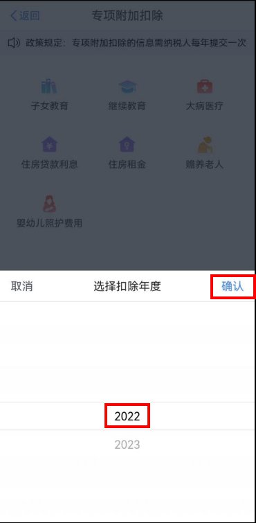第二步:选择扣除年度