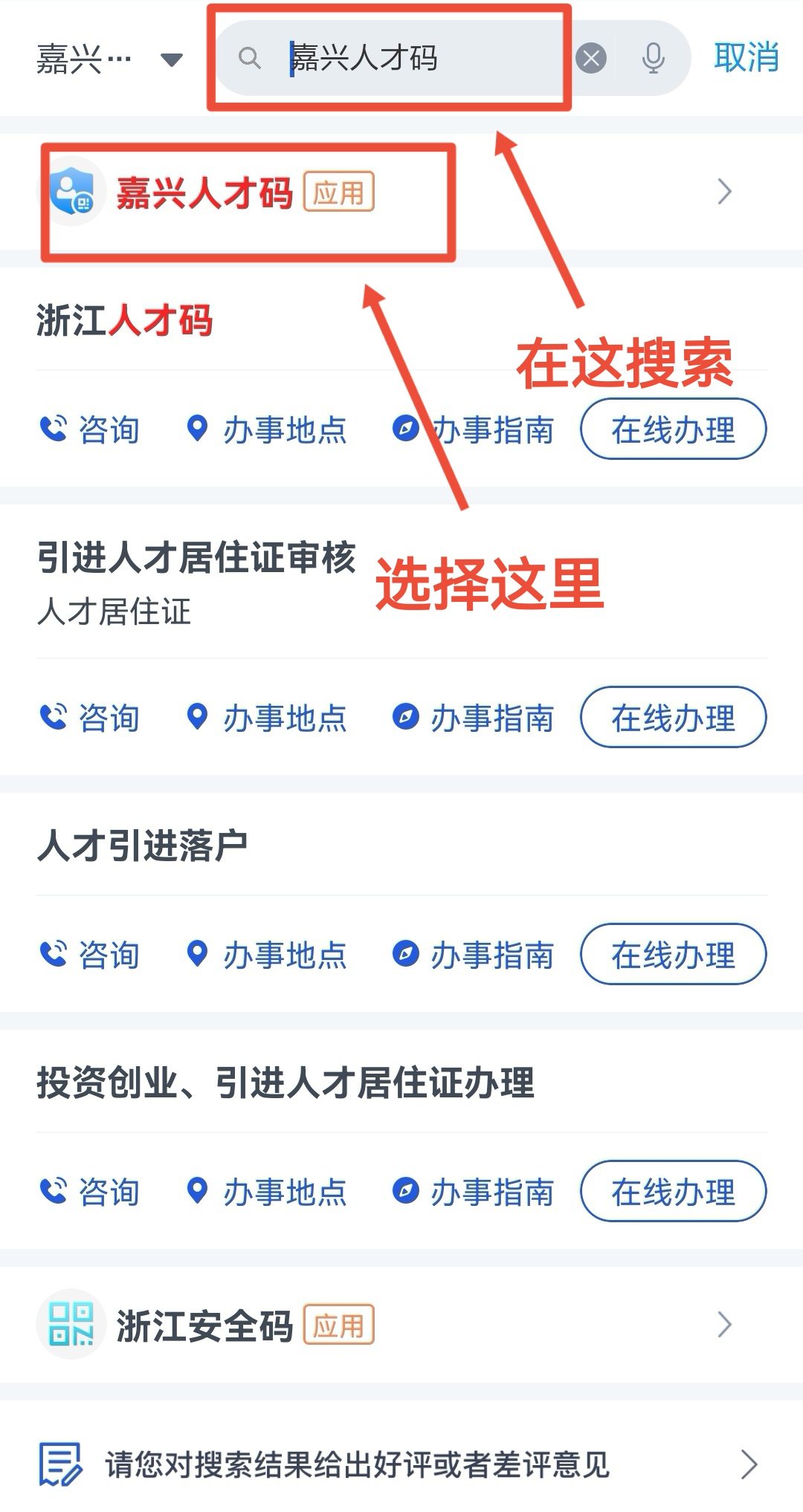 1.登录浙里办APP,搜索进入“嘉兴人才码”