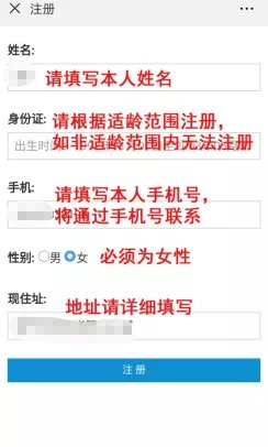 1.进入预约界面后,进行注册(可以提前注册),注册后可以按照预约时间段内进行预约。(一个微信号只能注册一次,同时既往预约成功的不再接受预约。)
