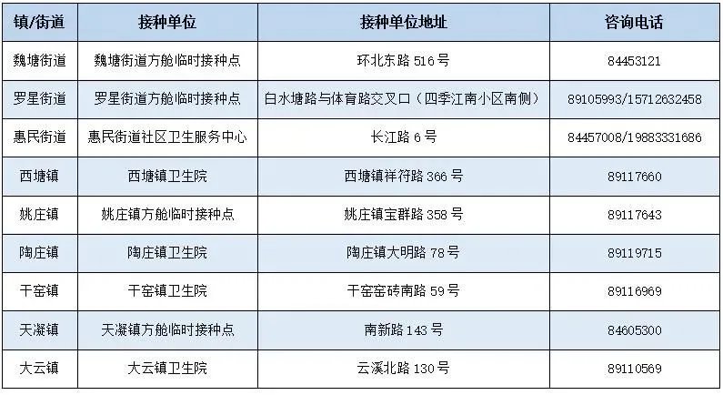 嘉善县60周岁以上老年人流感疫苗接种点信息一览表