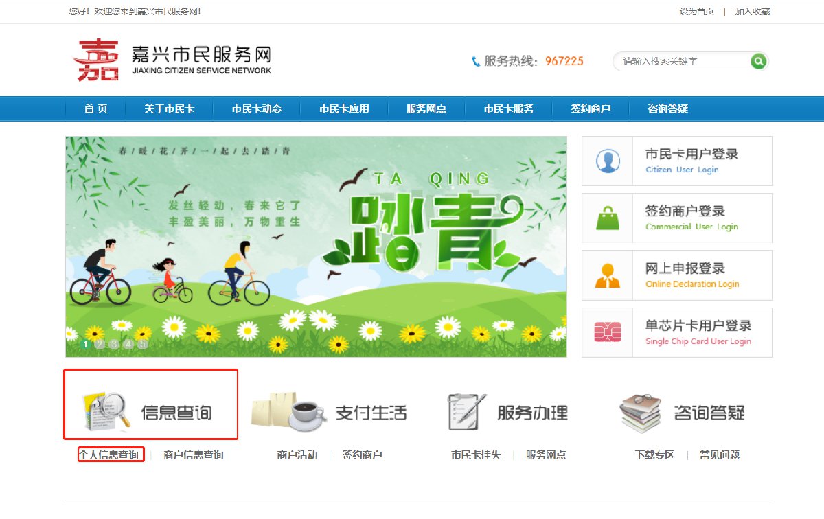 进入嘉兴市民服务网,在信息查询一览点击个人信息查询