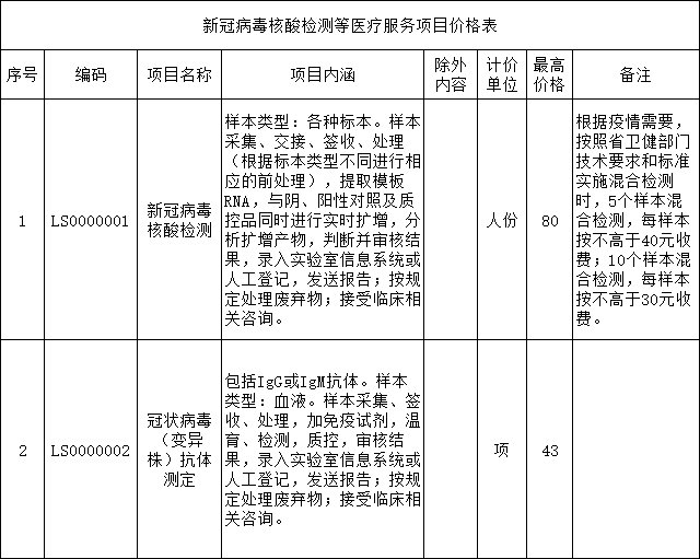 1月18日河北省医疗保障局、河北省卫生健康委发布关于调整新冠病毒核酸检测等医疗服务项目价格的通知: