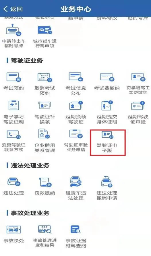 2、已注册用户请登录“交管12123”APP,可以在“交管12123”APP首页-【业务中心】或【我的驾驶证】模块中找到并进入【驾驶证电子版】模块