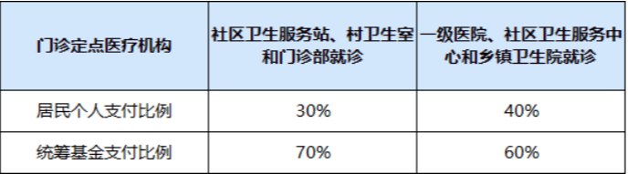 参保居民在本人签约的门诊统筹医疗机构门诊就诊,医疗费用不设起付线,年度最高支付限额为200元,具体支付标准比例如下: