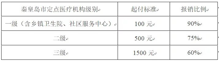 注:大中专在校学生在省外户籍地或实习地定点医疗机构就医发生的住院费用,符合秦皇岛市居民医保就医规定的,先现金垫付,出院后持相关材料到参保地保险机构结算,可享受与秦皇岛市同等级别医疗机构相同的起付标准、报销比例、最高支付限额等;医保电子凭证(社会保障卡)直接结算的,按我市异地就医政策享受待遇。