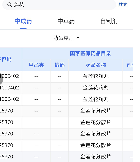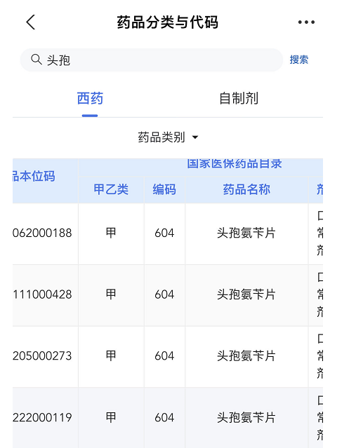 2、选择“药品目录”,显示“药品分类与代码”;