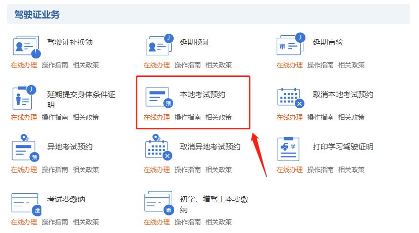 1、登录》》河北公安交通管理局服务平台,点击【本地考试预约】。