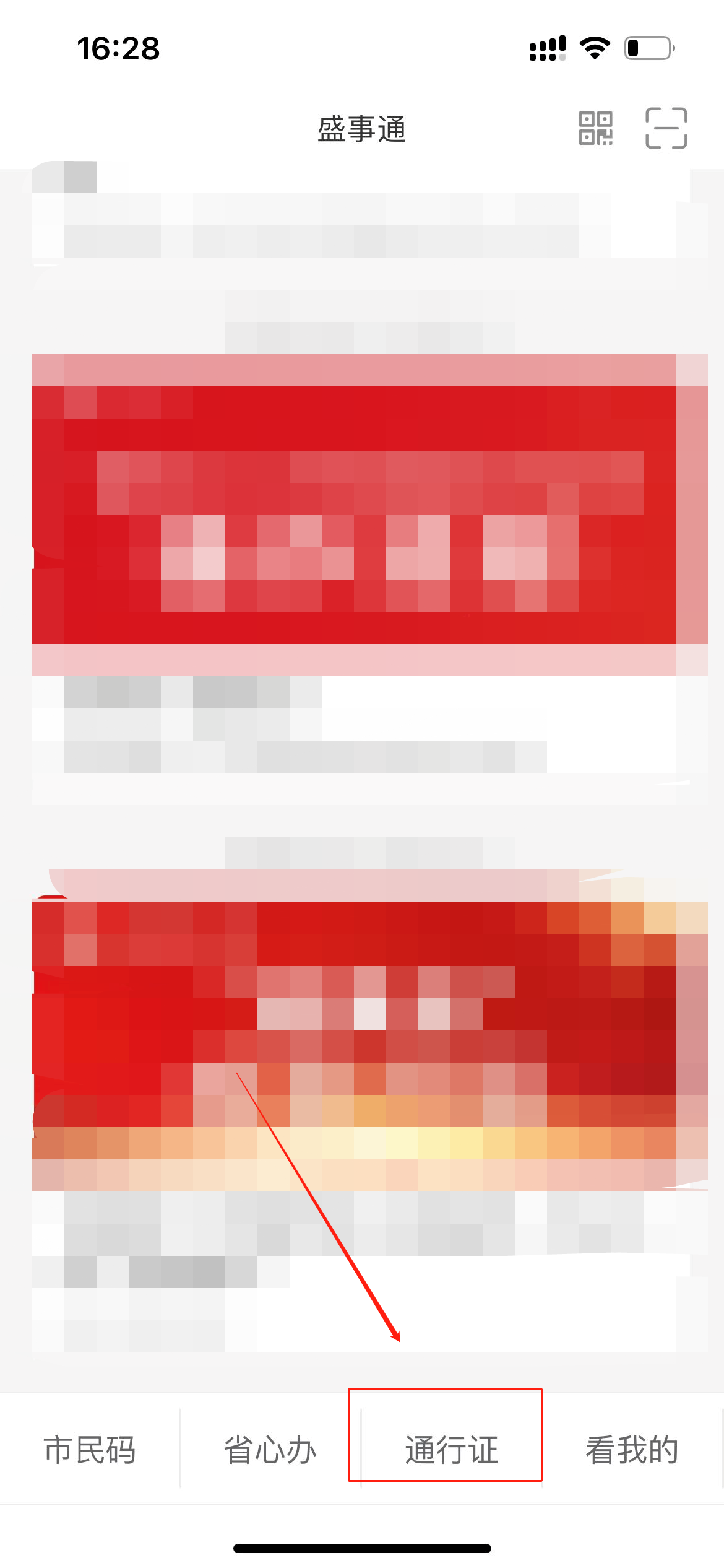 1、下载安装并打开盛事通APP,点击底部菜单栏“通行证”;