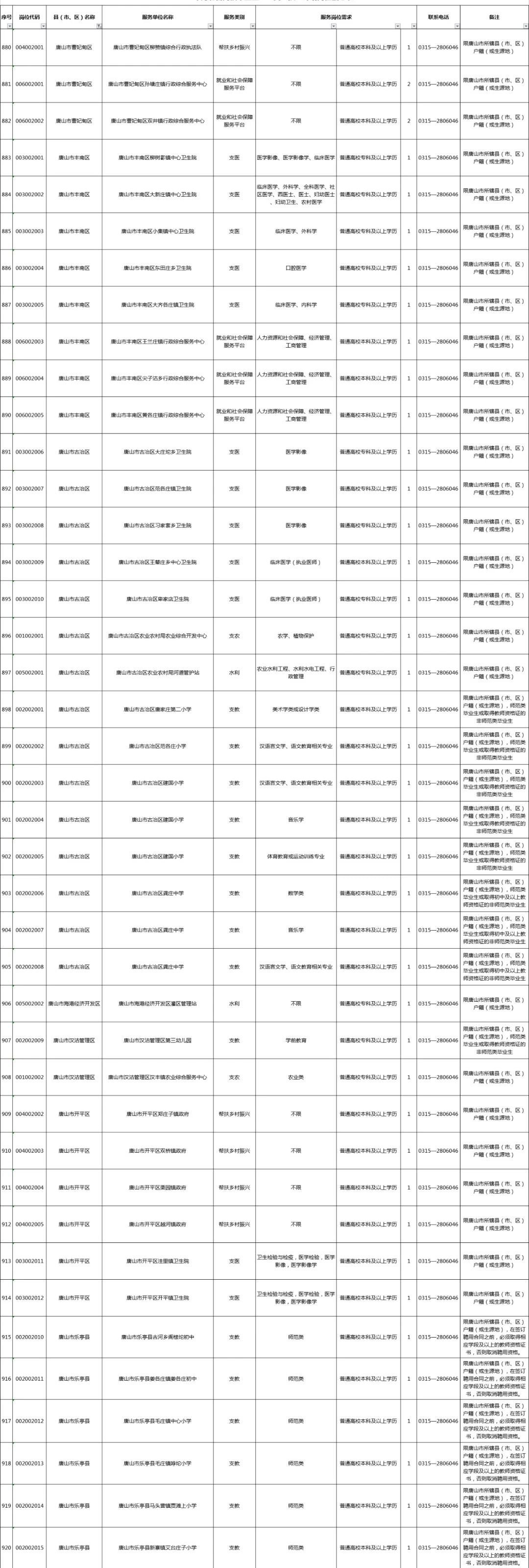 2021年河北省高校毕业生“三支一扶”计划招募岗位信息表(唐山)