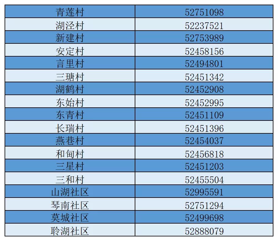 常熟莫城街道各村及社区返回人员报备登记电话一览