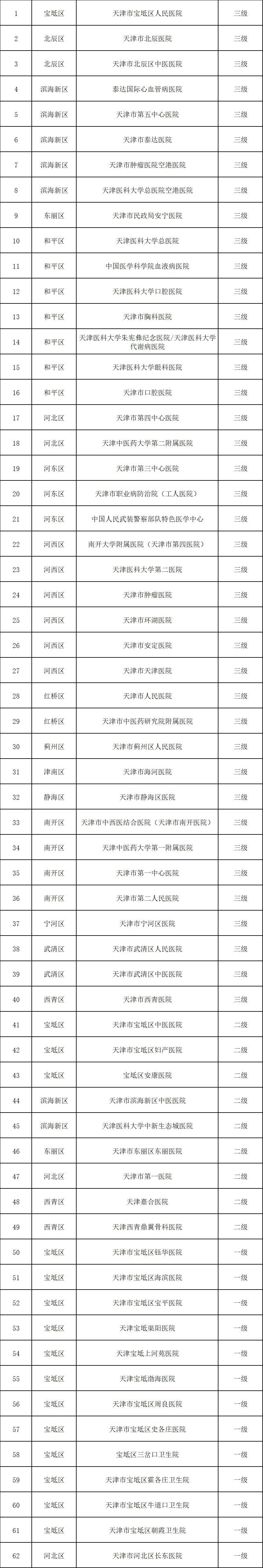 天津市京津冀异地就医门诊直接结算定点医疗机构名单(62家)