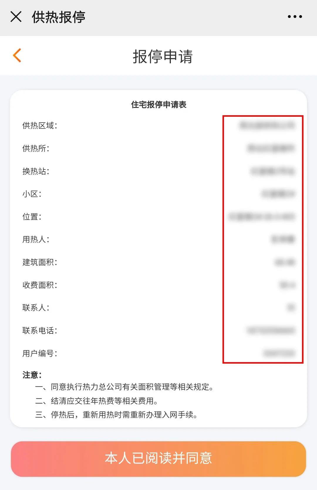 第六步:查看住宅报停协议,信息确认无误,报停成功