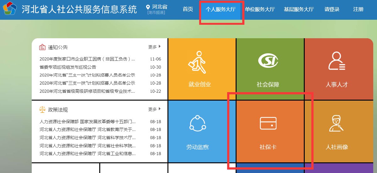 步骤2:进入“个人服务大厅”,选择“社保卡”板块