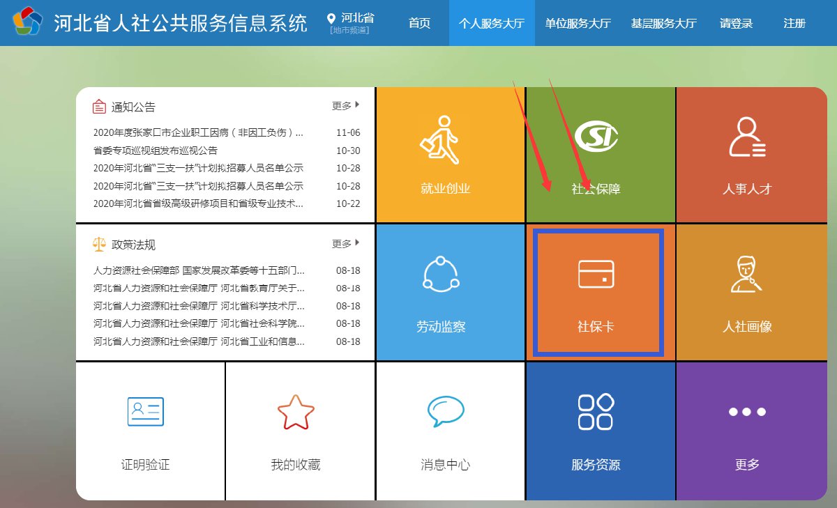 步骤2:进入“个人服务大厅”,选择“社保卡”板块