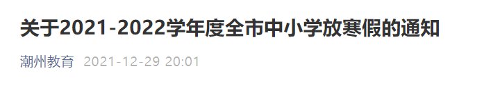 根据《潮州市2021-2022学年度普通中小学校校历》《潮州市2021-2022学年度中等职业学校校历》规定,