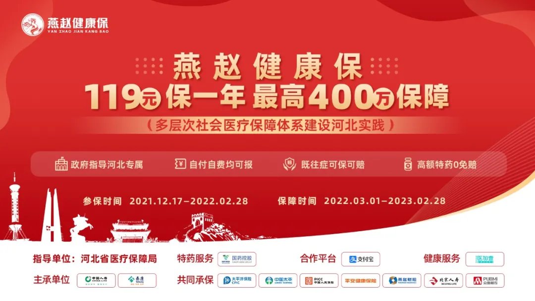 “燕赵健康保”是由河北省医疗保障局指导,专为河北医保参保人定制的一款补充医疗保险产品。“燕赵健康保”本着广覆盖、强衔接、市场化、可持续的原则,紧密衔接基本医疗保险,旨在提升参保群众医疗保障水平,是河北省多层次医疗保障体系的重要组成部分。