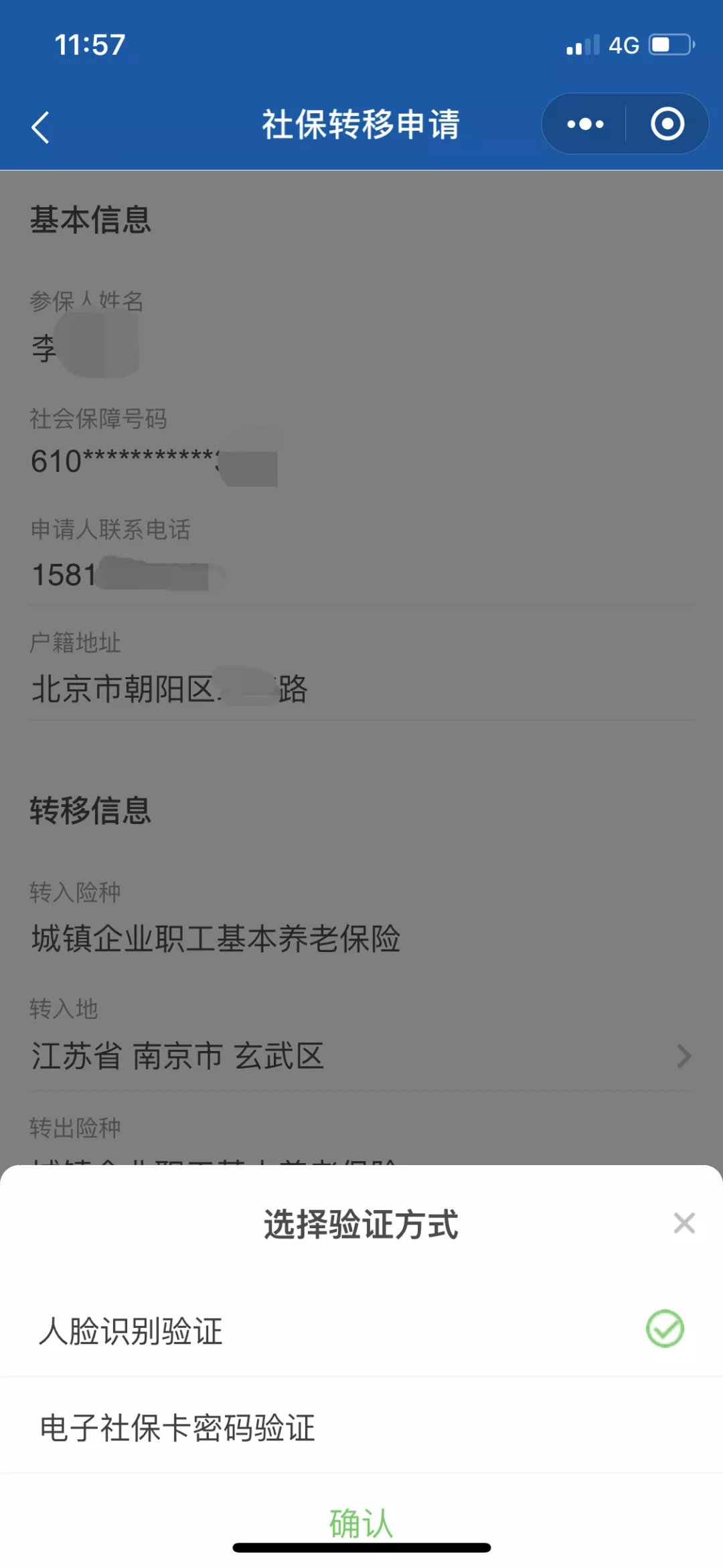 对于已开通网上申请的地区,您可以点击“全国服务”—“社保转移申请”服务,填写转移申请相关信息,并经人脸识别的实人认证后,提交申请。