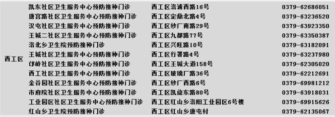 洛阳市西工区新冠病毒疫苗预防接种单位名单 (截止2021年5月17日)