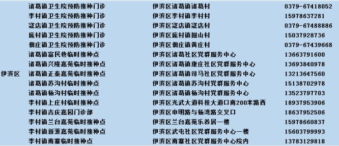 洛阳市伊滨区新冠病毒疫苗预防接种单位名单 (截止2021年5月17日)