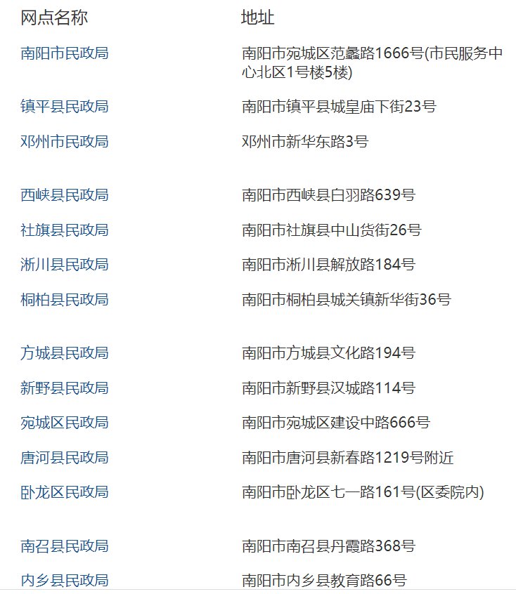 地址:南阳市宛城区民政局婚姻登记处长江东路569号