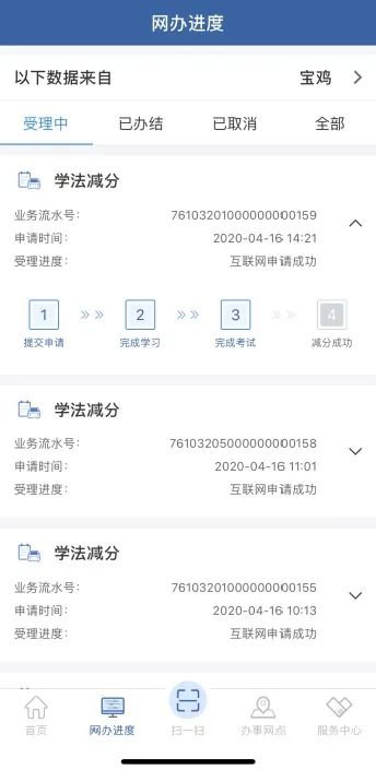考试通过的用户,可点击【前往查看】按钮,跳转至网办进度查看记录。