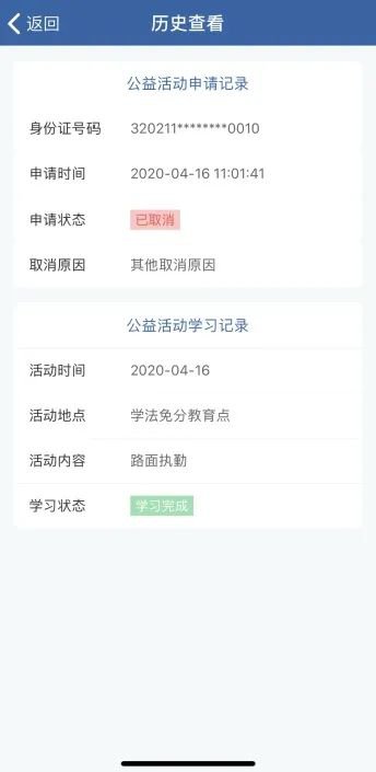 点击每一条记录可查看详情,包括学习记录、考试记录等。