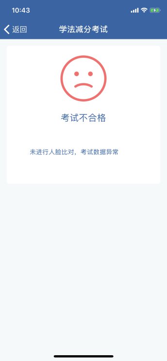 所有题目答完进入实人认证,通过后由系统判定考试合格或不合格,不合格的系统给出原因。