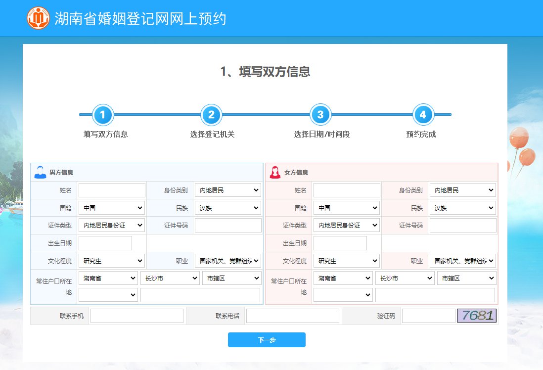第三步:输入当事人双方信息,根据提示系统提示完成预约