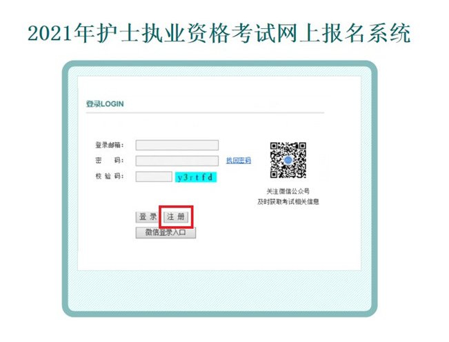 打开护士执业资格考试网上报名系统登录页面,点击[注册],按要求完成用户注册。 具体操作见下图: