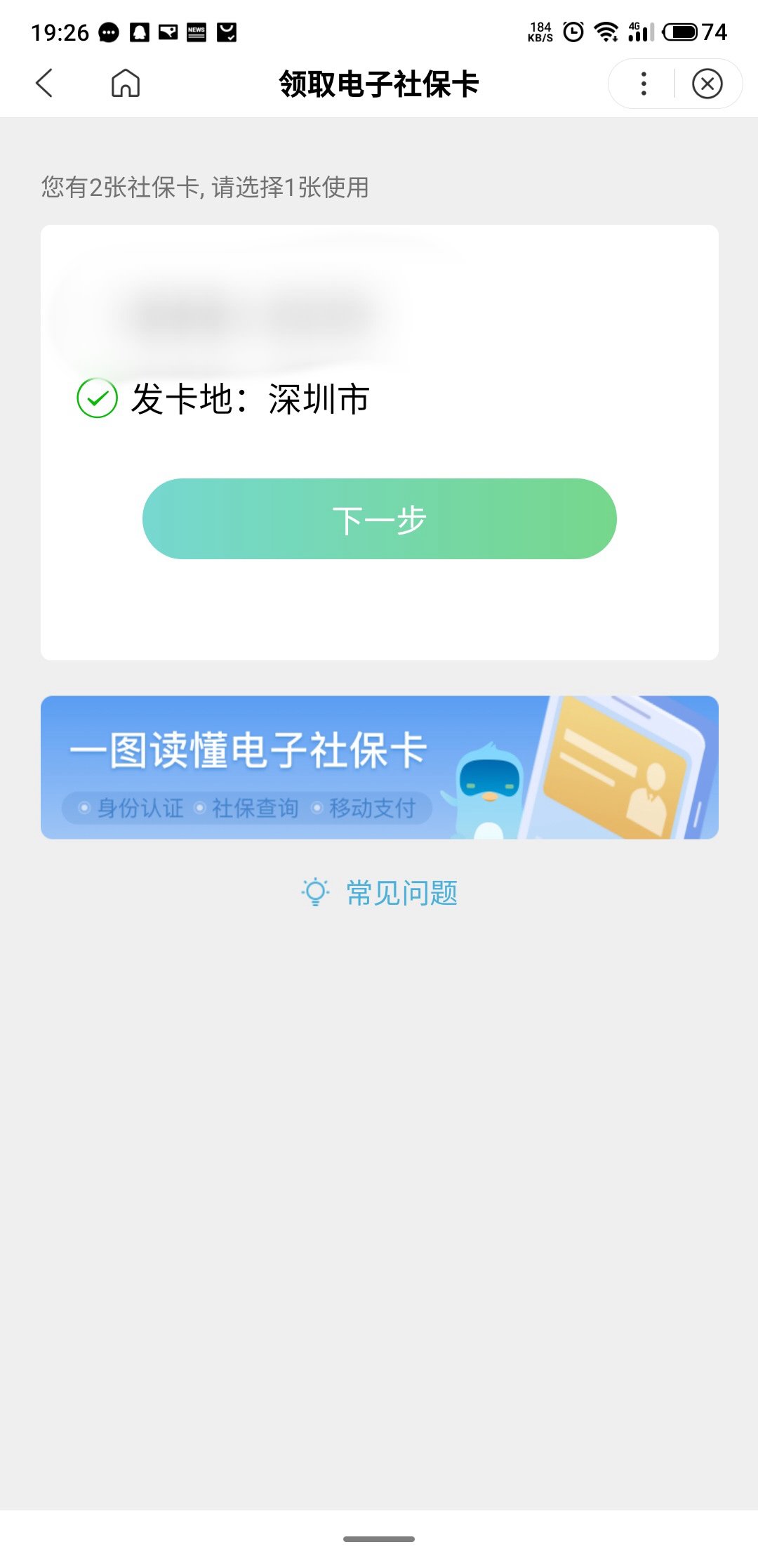 第四步:选择发卡地,点击『下一步』,这里要注意,如果没有电子社保卡的,要先申领电子社保卡,然后在进行认证