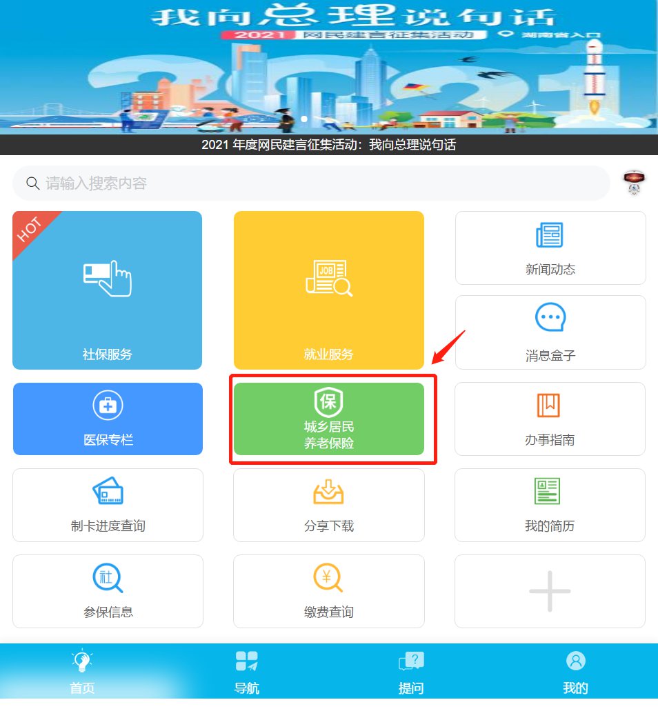 3、点击“城乡居民养老保险”