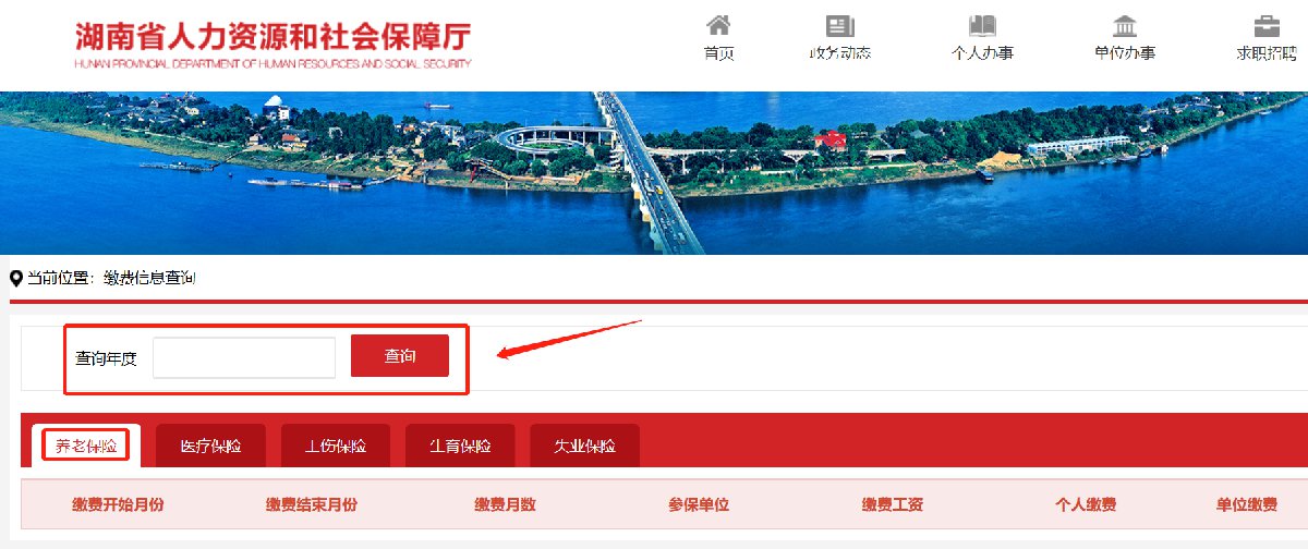 3、输入查询年度 - 点击养老保险