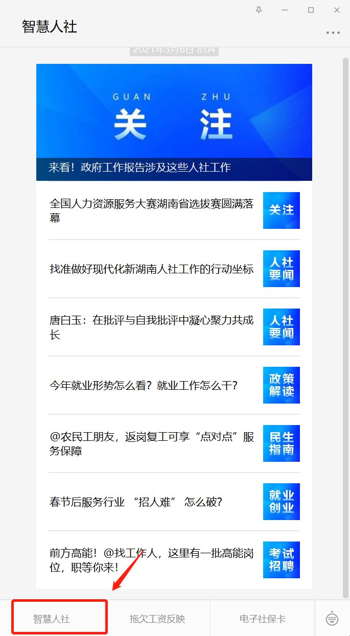 1、搜索微信公众“智慧人社”,关注公众号