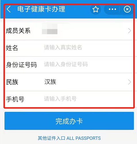 第六步:在健康卡信息界面,先进行”授权“允许,点击”允许“后,开始填写健康卡信息。