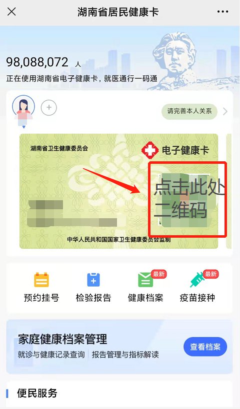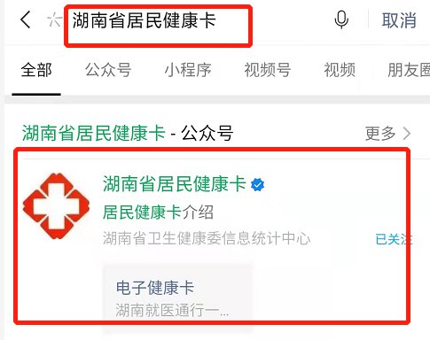 第一步:微信搜索公众号“湖南省居民健康卡”并关注,关注后进入公众号聊天界面。