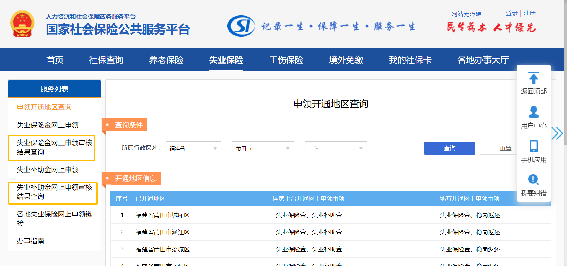 莆田失业保险金、一次性生活补助网上办理流程