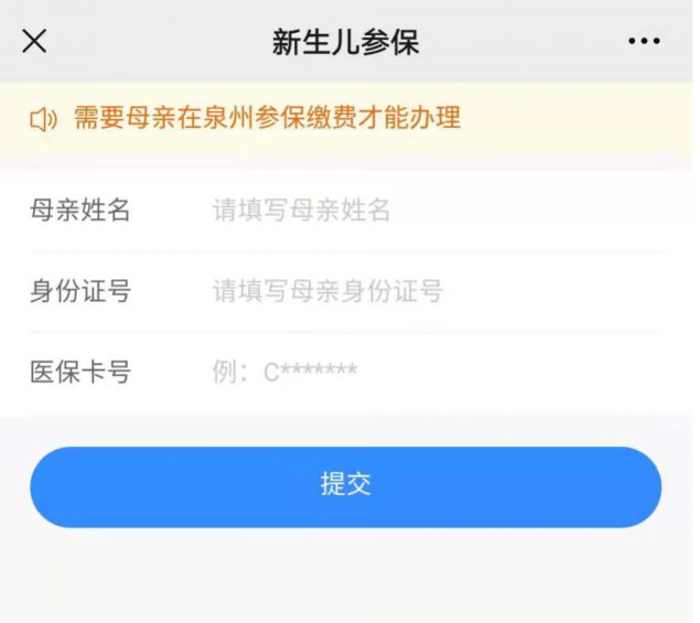 2.首次进入新生儿参保页面 需要填写“母亲姓名,母亲身份证号,母亲医保卡号”,母亲需要在泉州参保缴费才能办理。