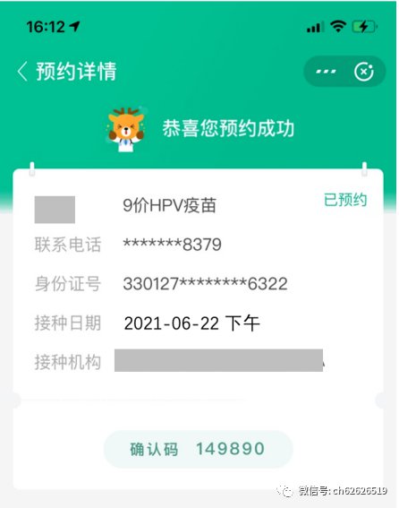 ②预约成功信息